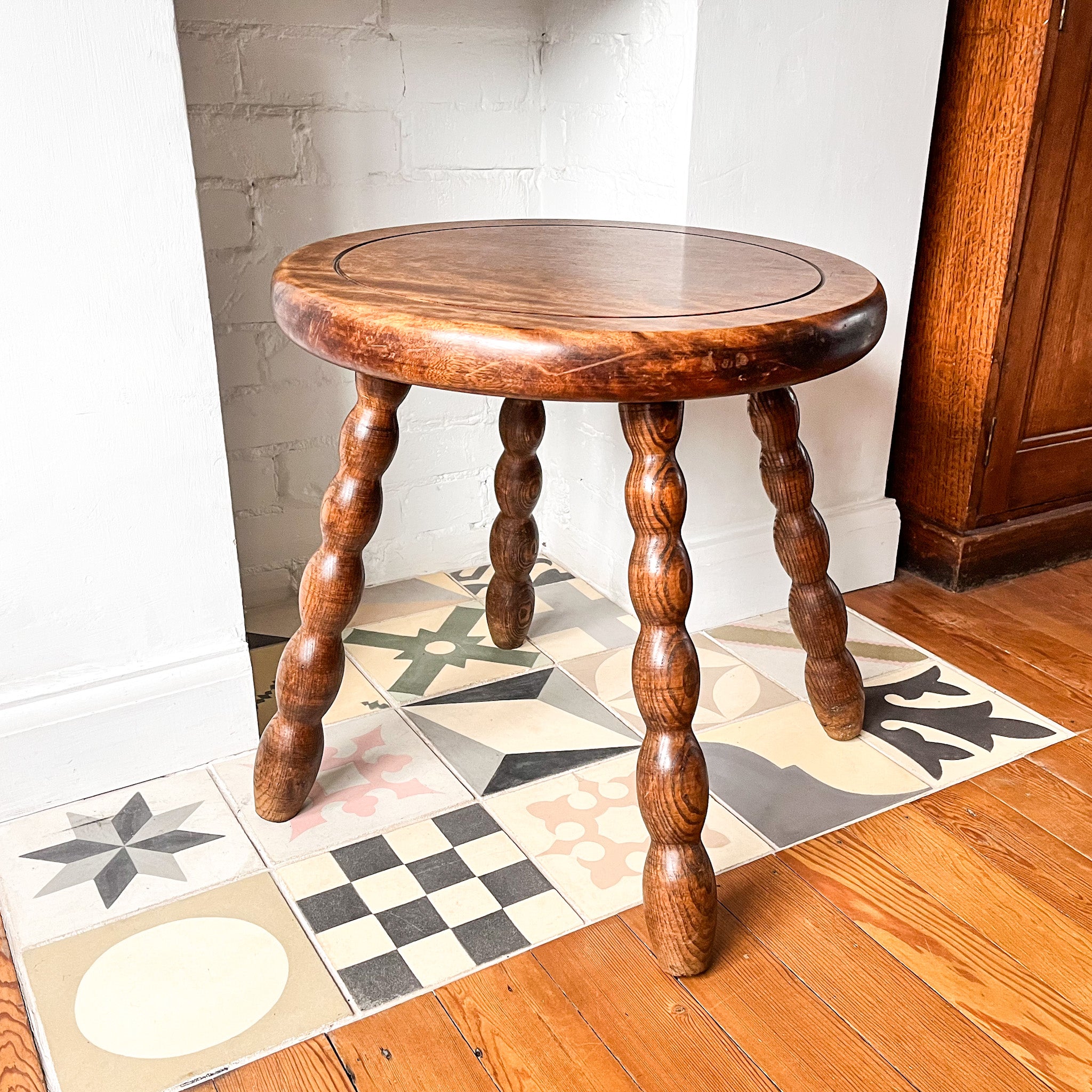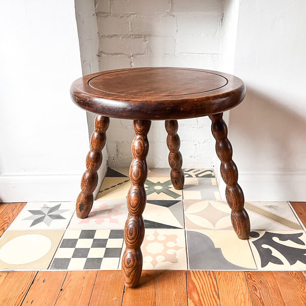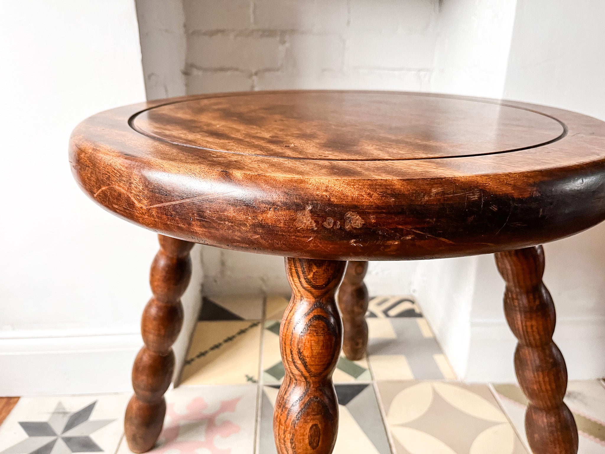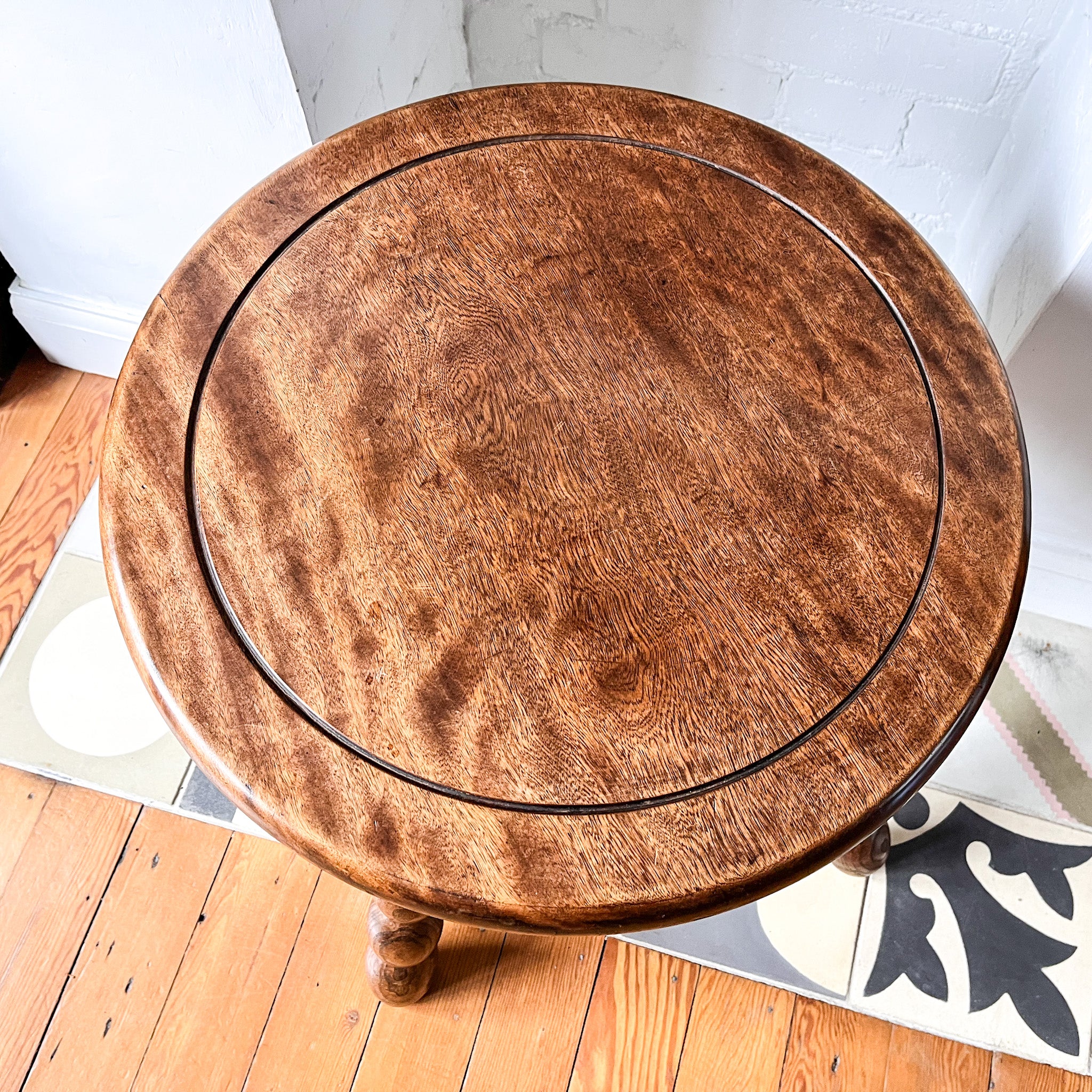 A beautiful French antique round side table standing on four bobbin legs. Quite a heavy and chunky piece.