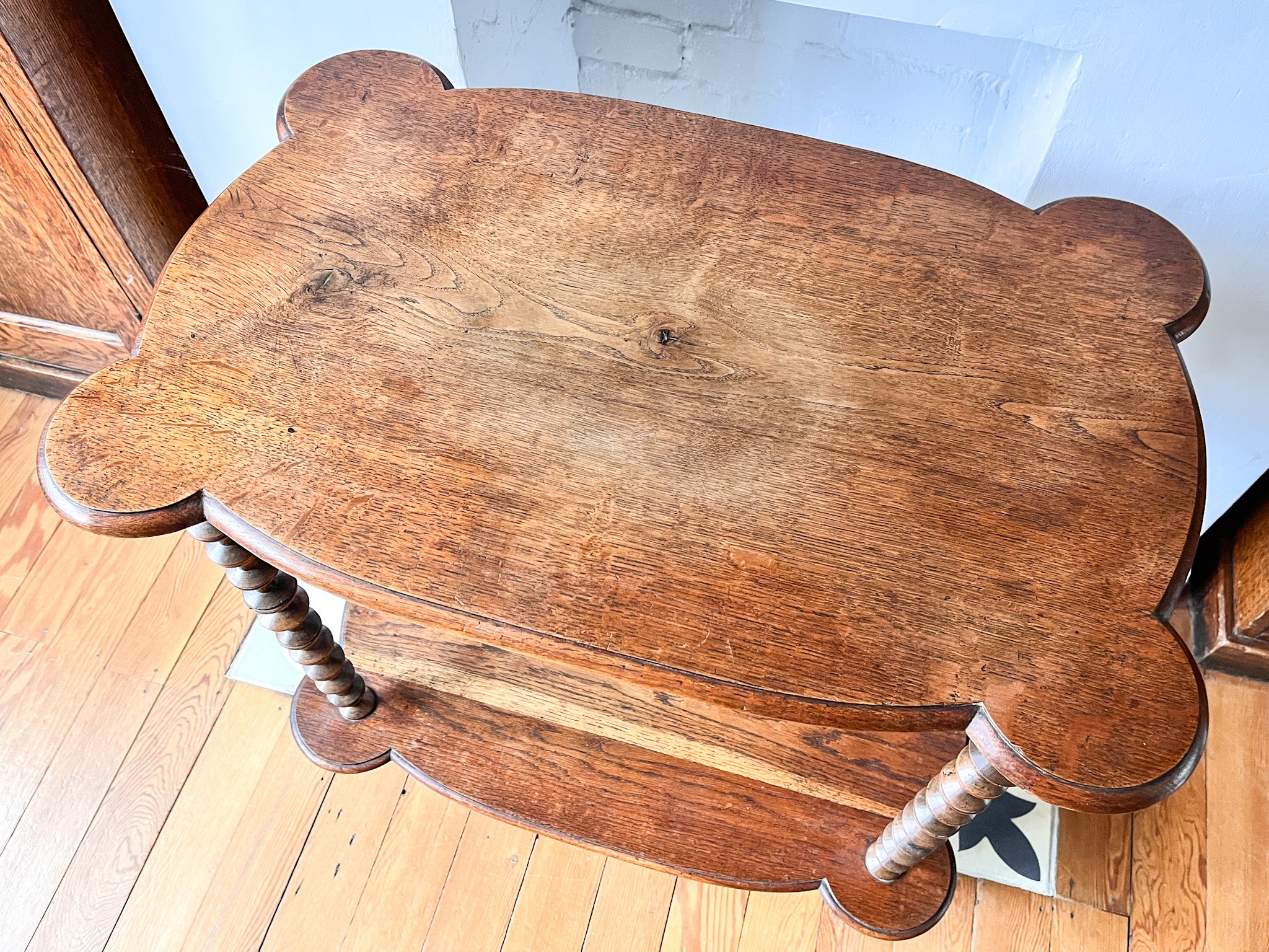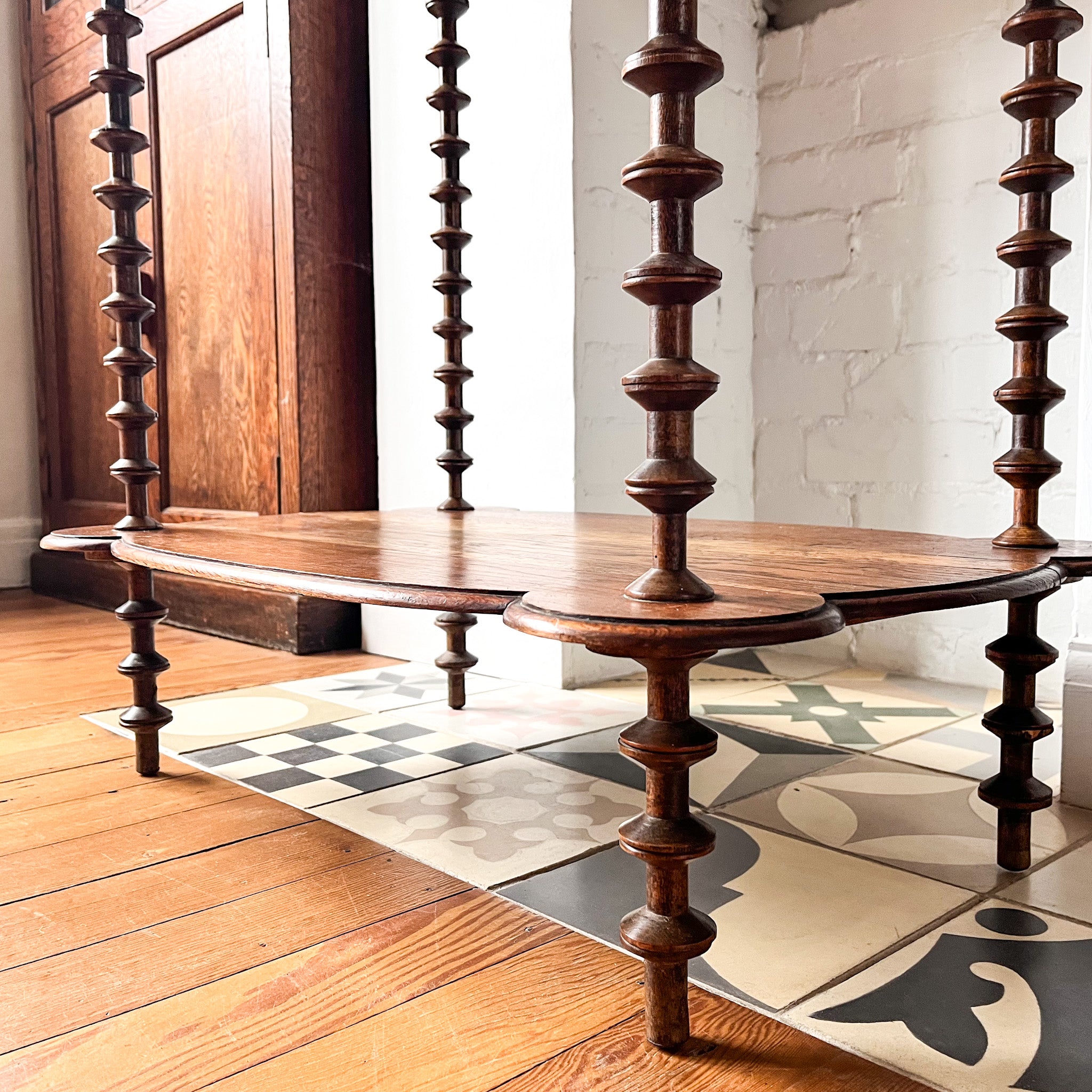 A French antique console table standing on spindle supports. A great decorative and useful piece in a good large enough size with a shelf underneath for extra storage.