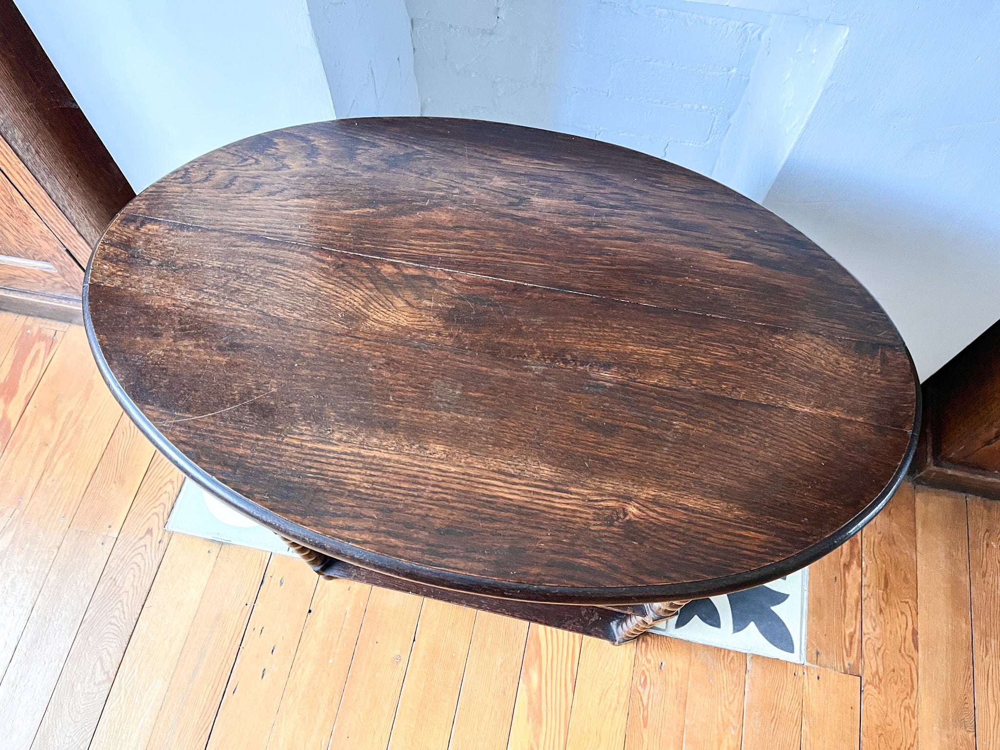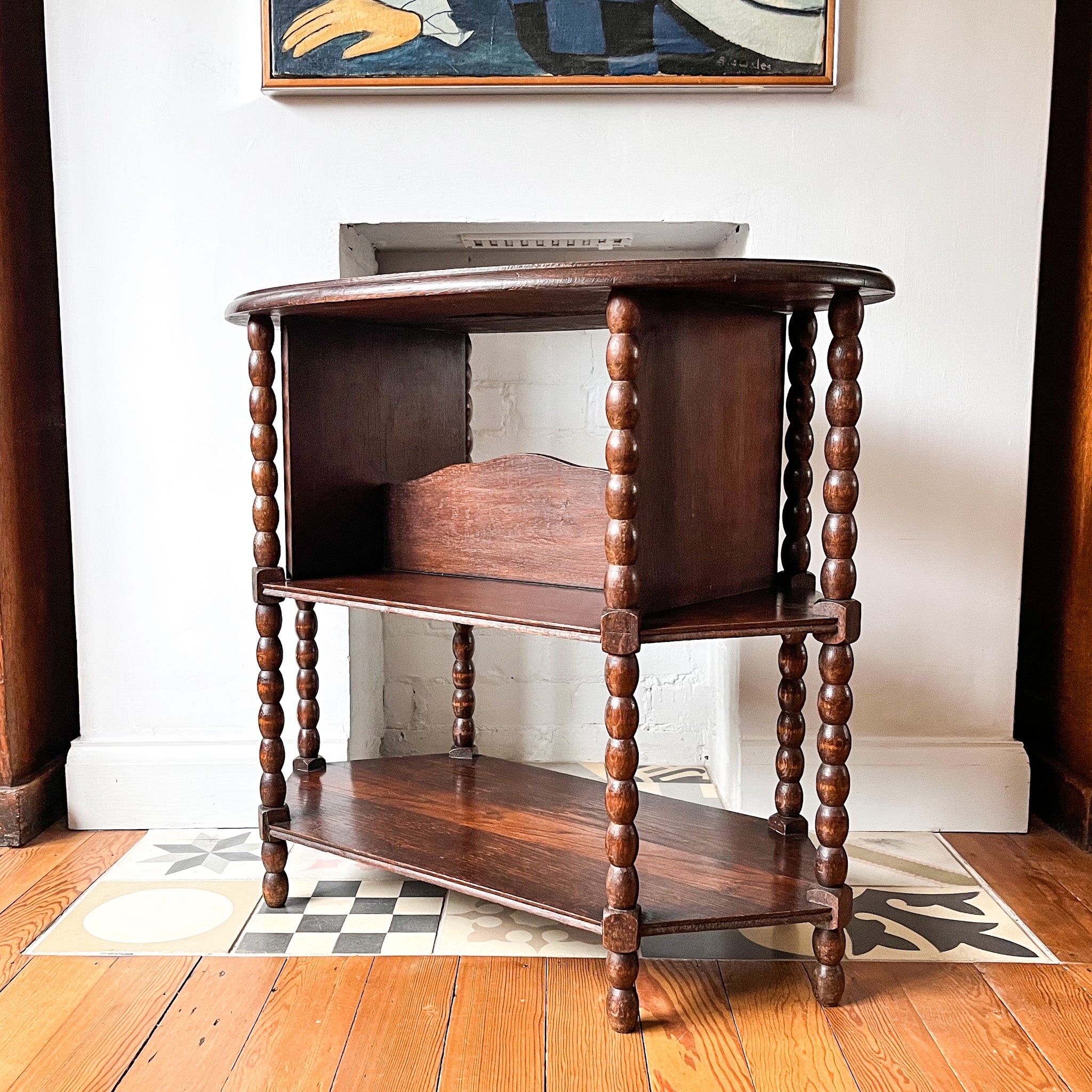 This bobbin table is such a stunning and unique piece of continental furniture. It can be used as a side table, as a little bookcase or even as a drinks station with bottles on the table top and glasses on the shelves.