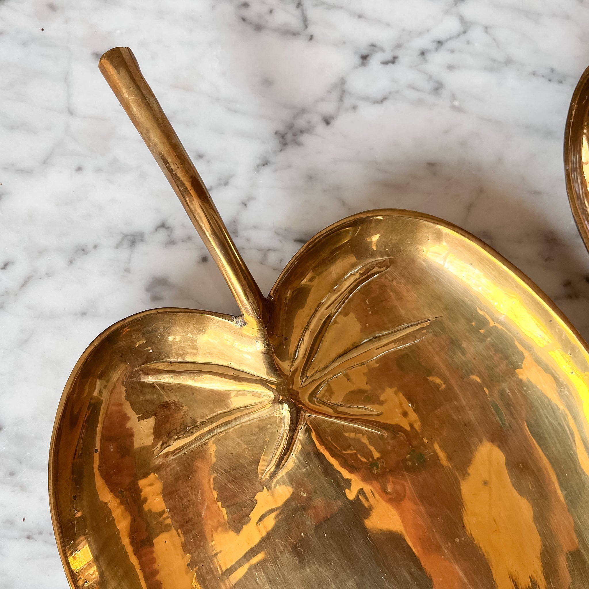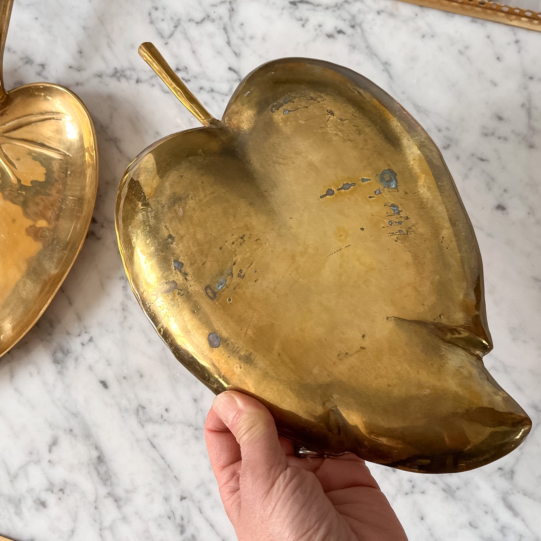 A wonderful French brass decorative tray in the shape of a leaf. Will be useful just about anywhere in the house - a coffee table, a bedside or a bathroom.