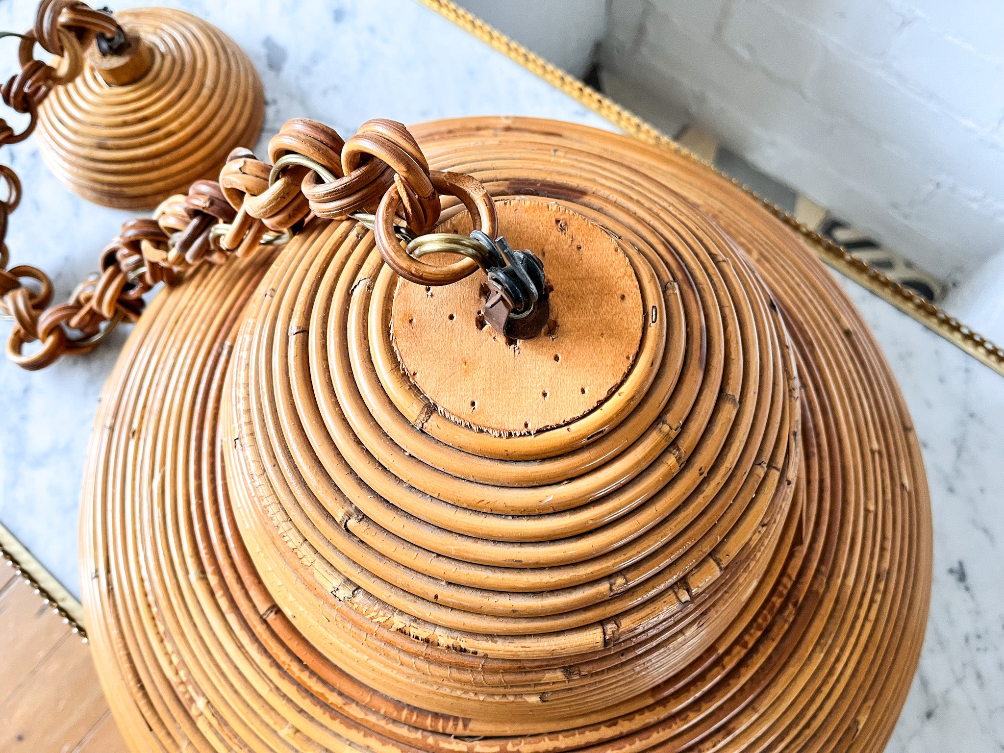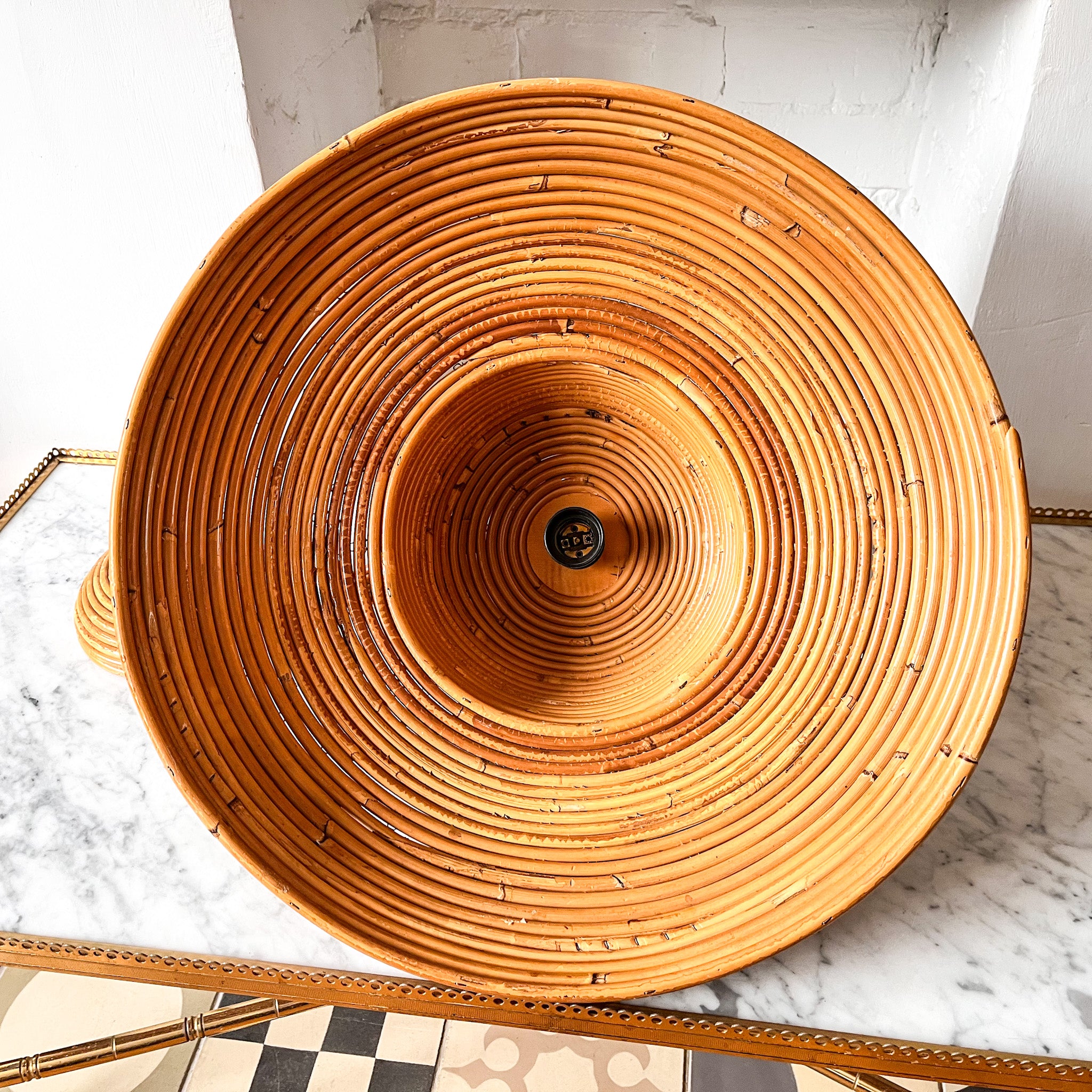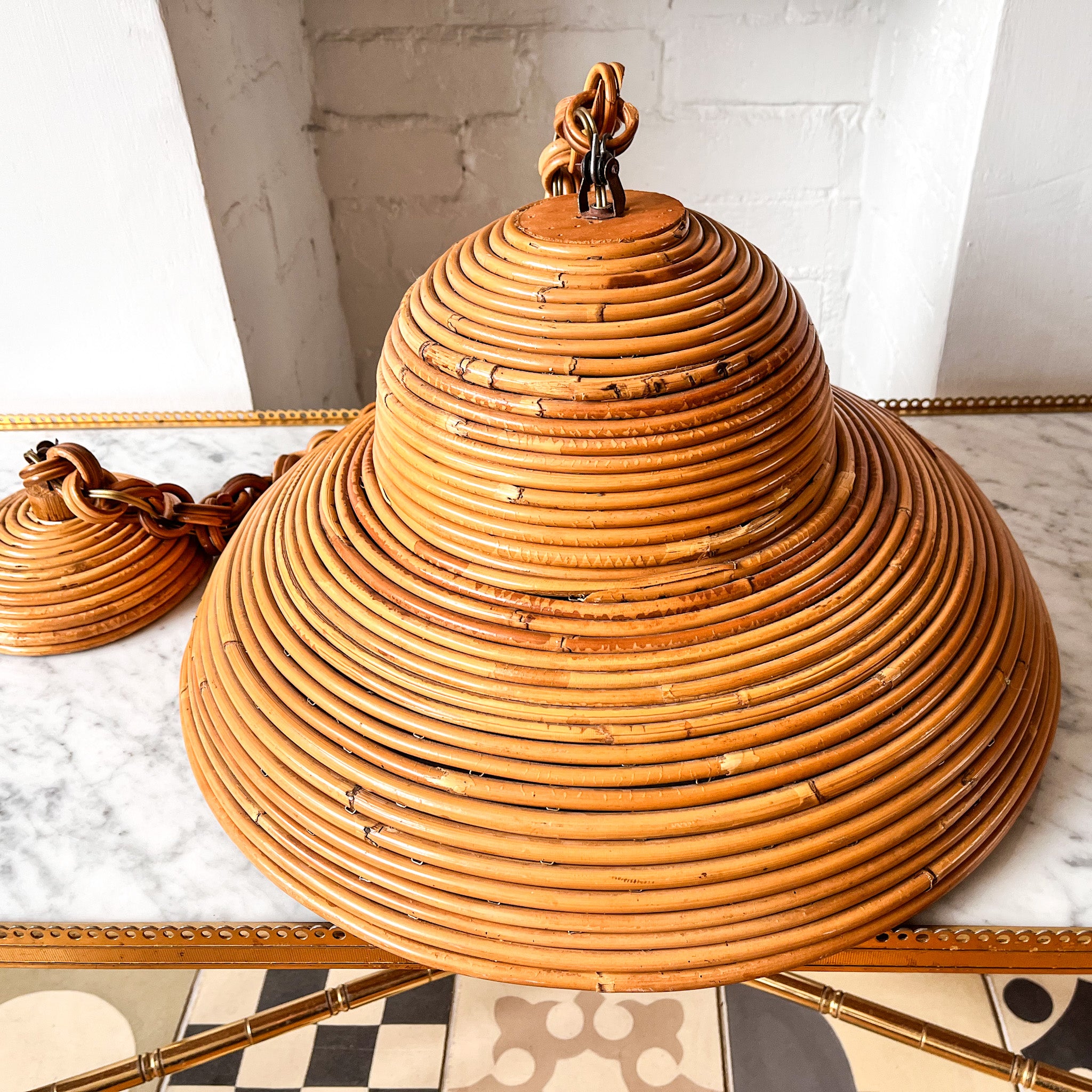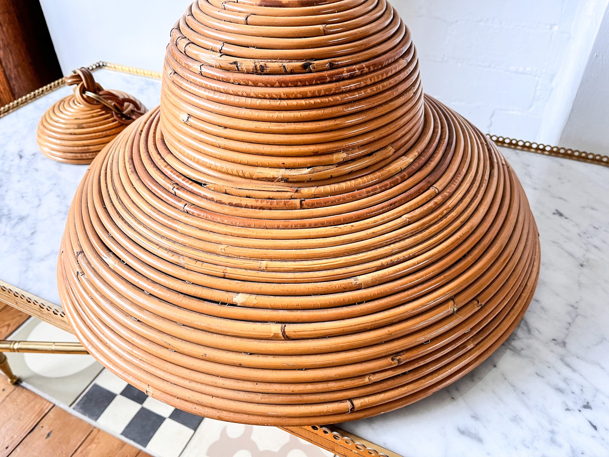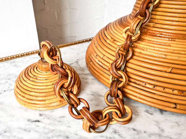 A large vintage Italian pencil reed pendant lamp in the style of Vivai Del Sud (circa 1970s). It will look perfect over a dining table.