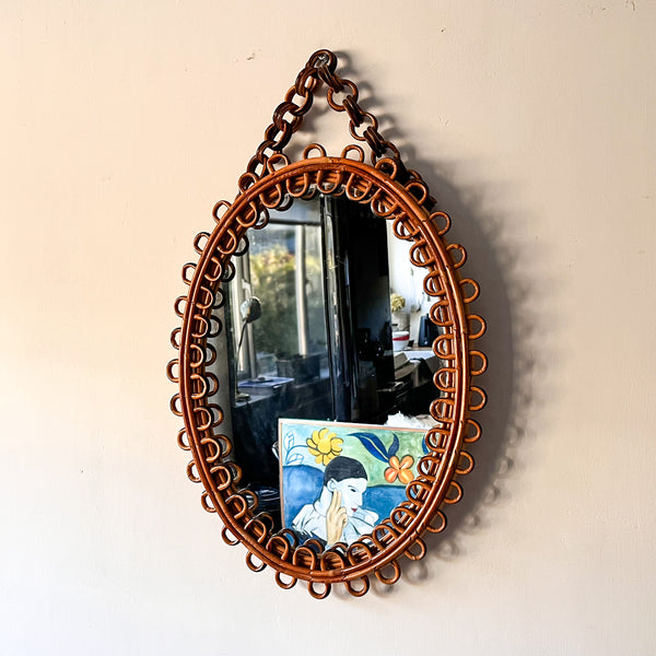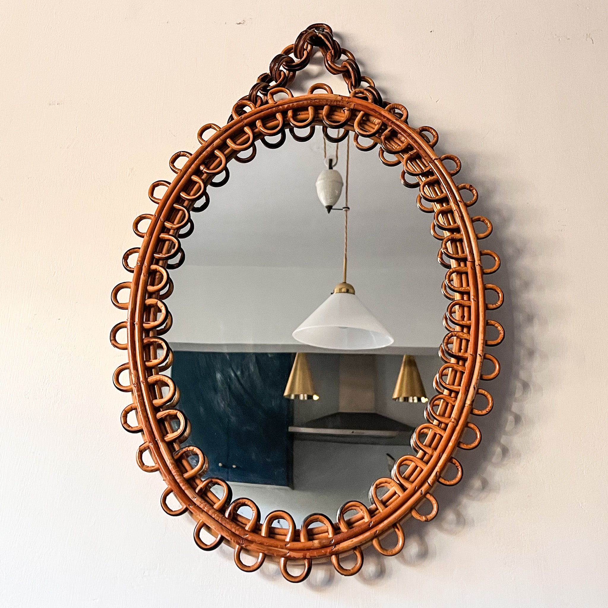 A classic mid-century Italian bamboo mirror by Franco Albini. Medium sized it will look stunning in a hallway, a bathroom or a bedroom.