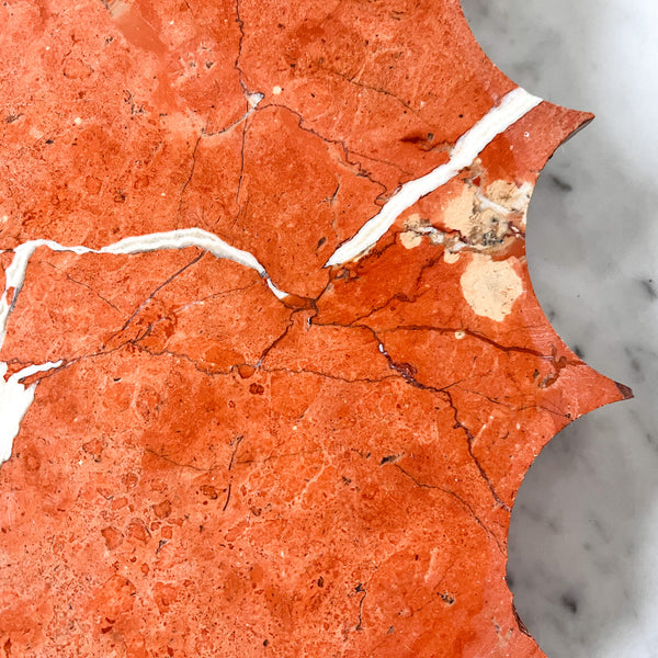A beautiful and unusual slab of marble that will make a fantastic table top decorative object, a stand or a centrepiece. Will look great on a coffee table or a side table. It's quite thick and heavy.