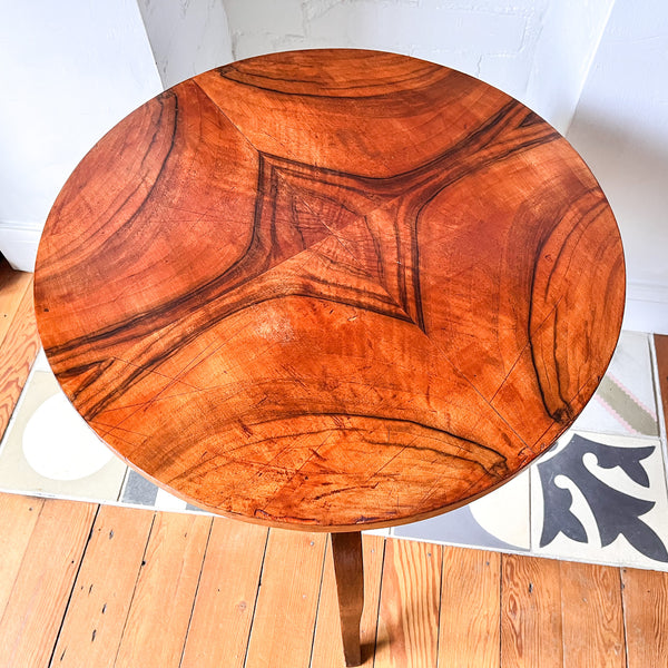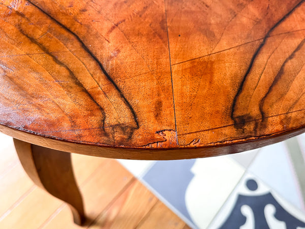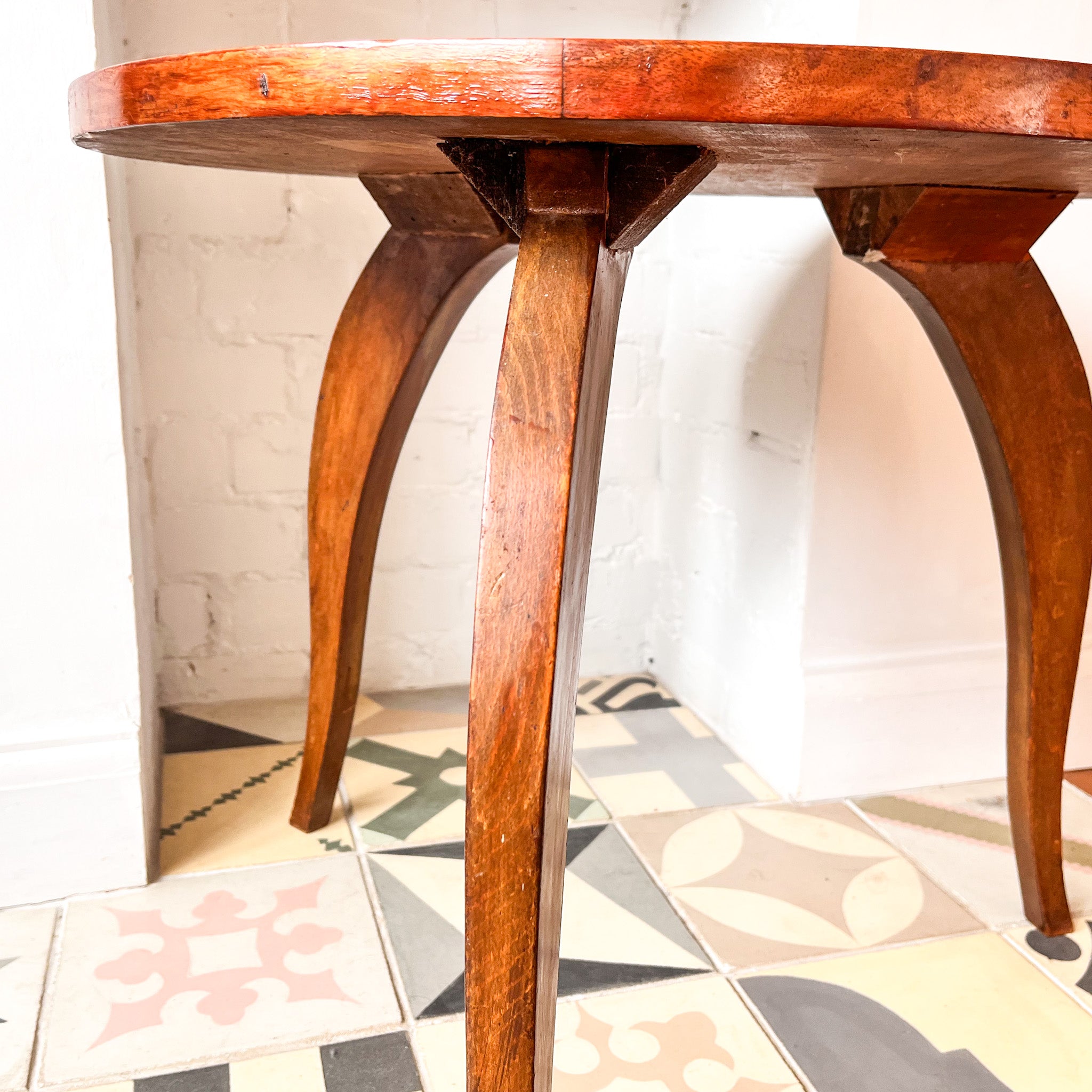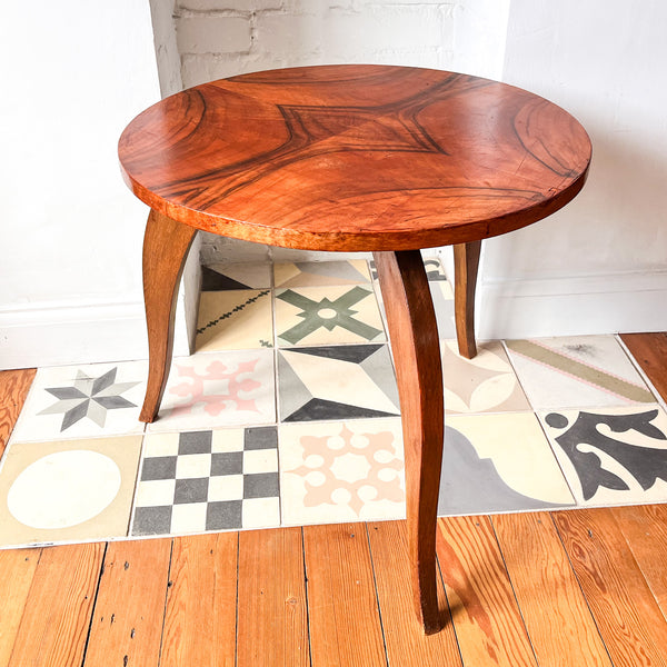 A beautiful Art Deco side table in walnut veneer with a very attractive pattern. Lovely curvy shape.