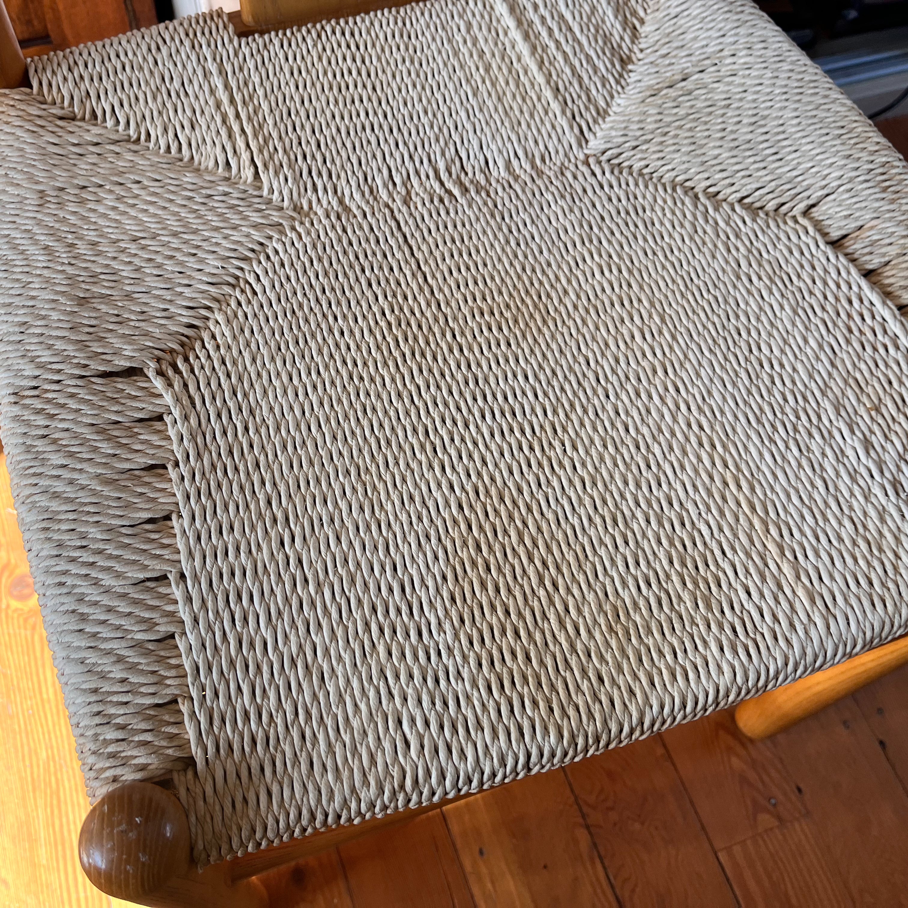 The chairs are in a lovely vintage condition. The rush on the seats is strong with no obvious rips. Some minor surface marks on the wood commensurate with age. Fading on the rush which is now a tone lighter than the underside. Some uneven fading in places. Please see close up photos for details.