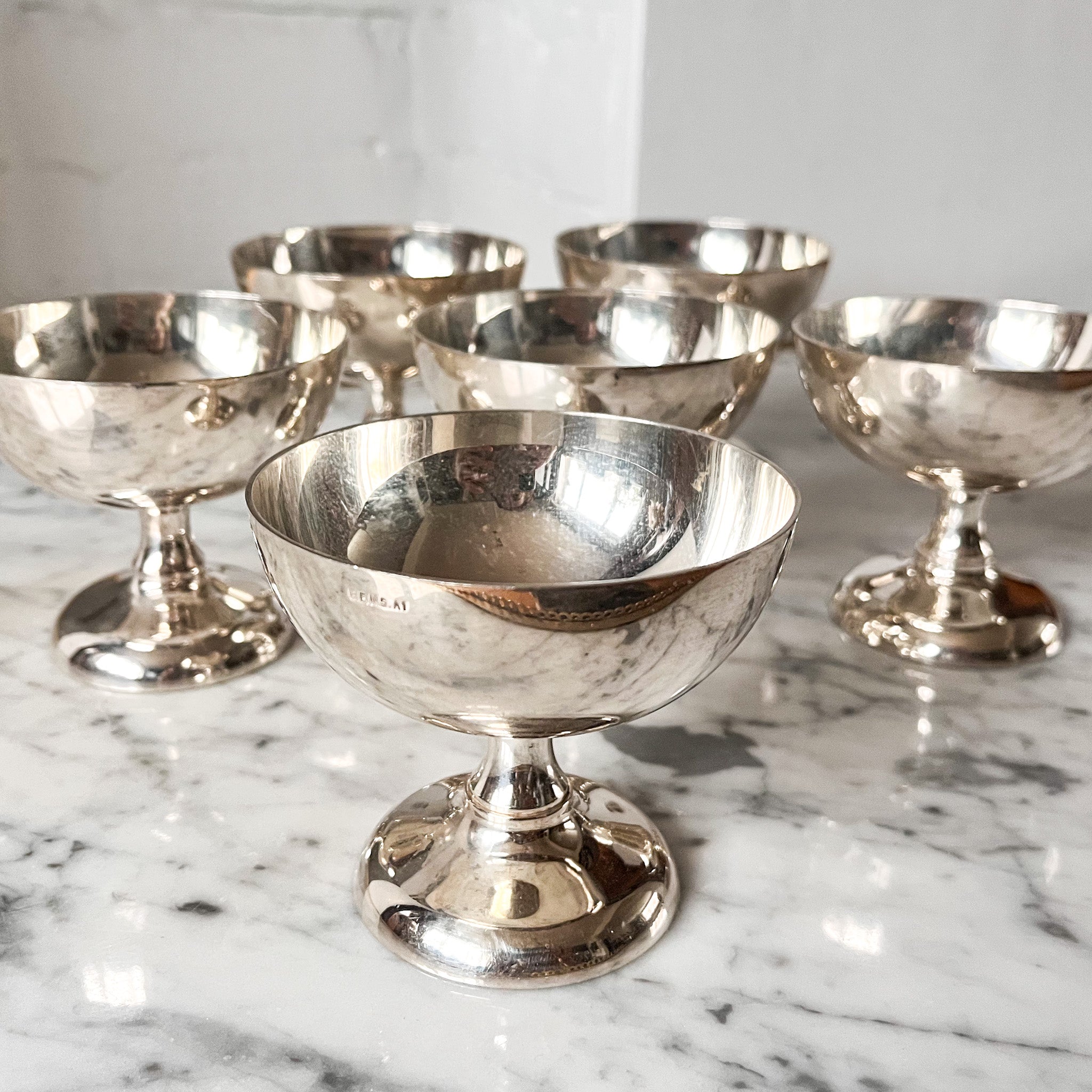 A set of six British vintage silver plated ice cream or dessert coups.