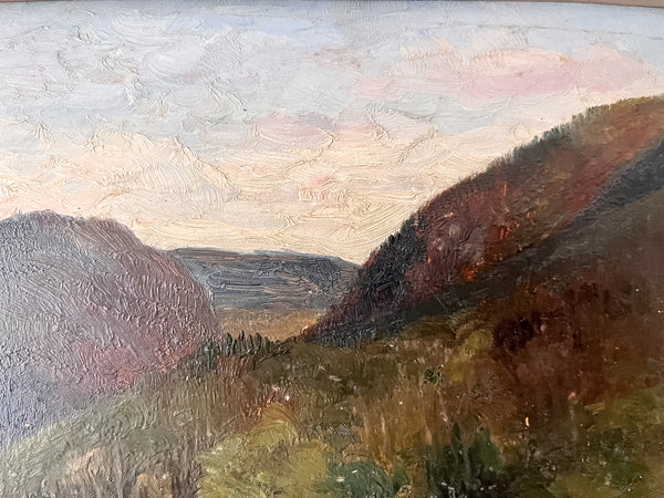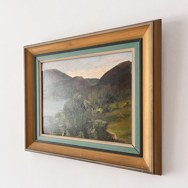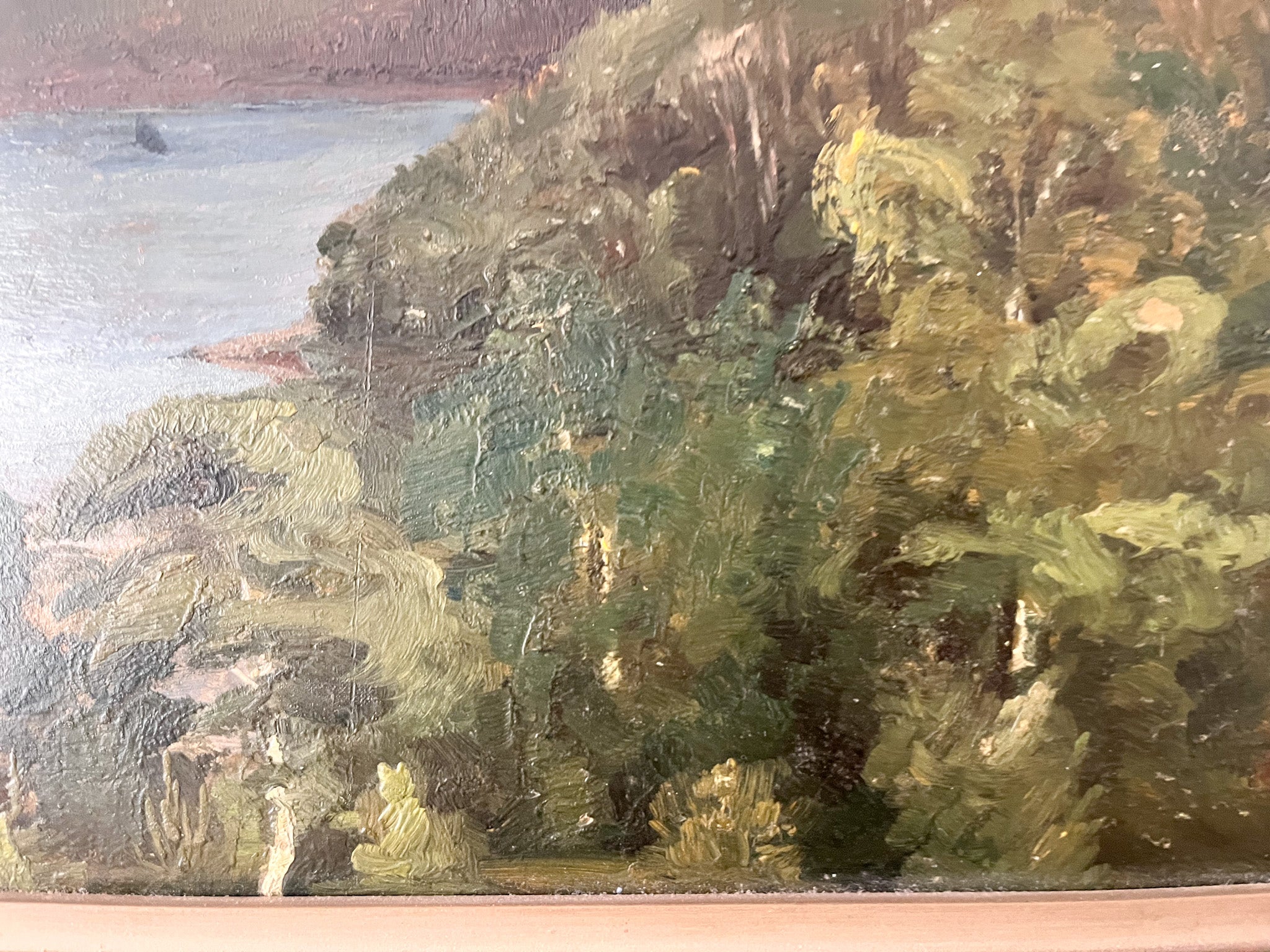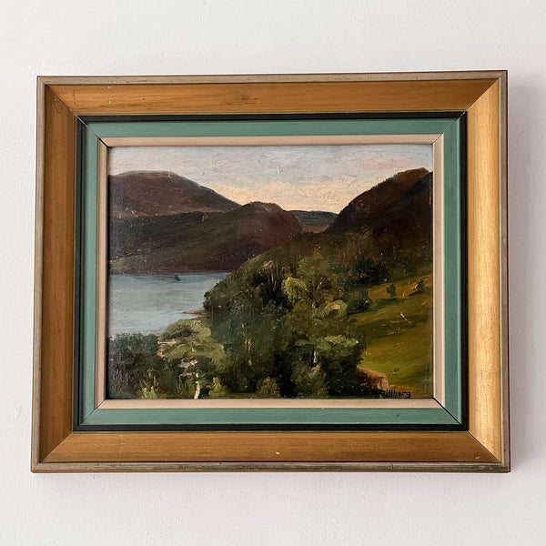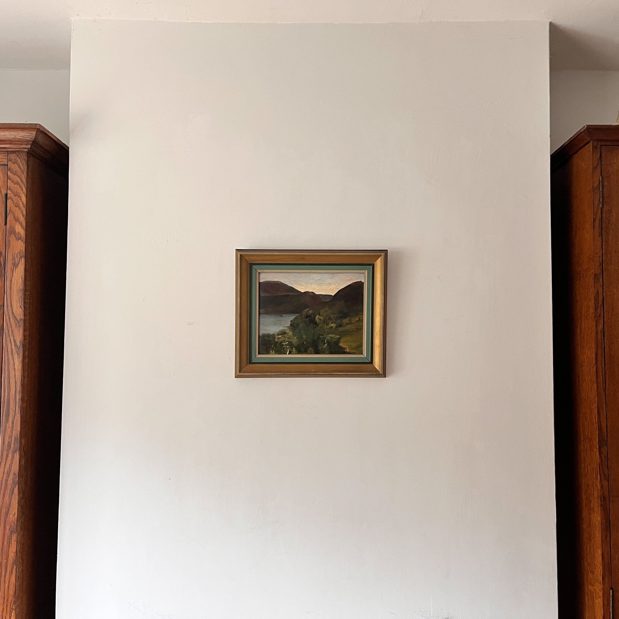 A small scale oil on board landscape painting by a Swedish artist. Beautiful colour palette of deep greens in a well matched frame.