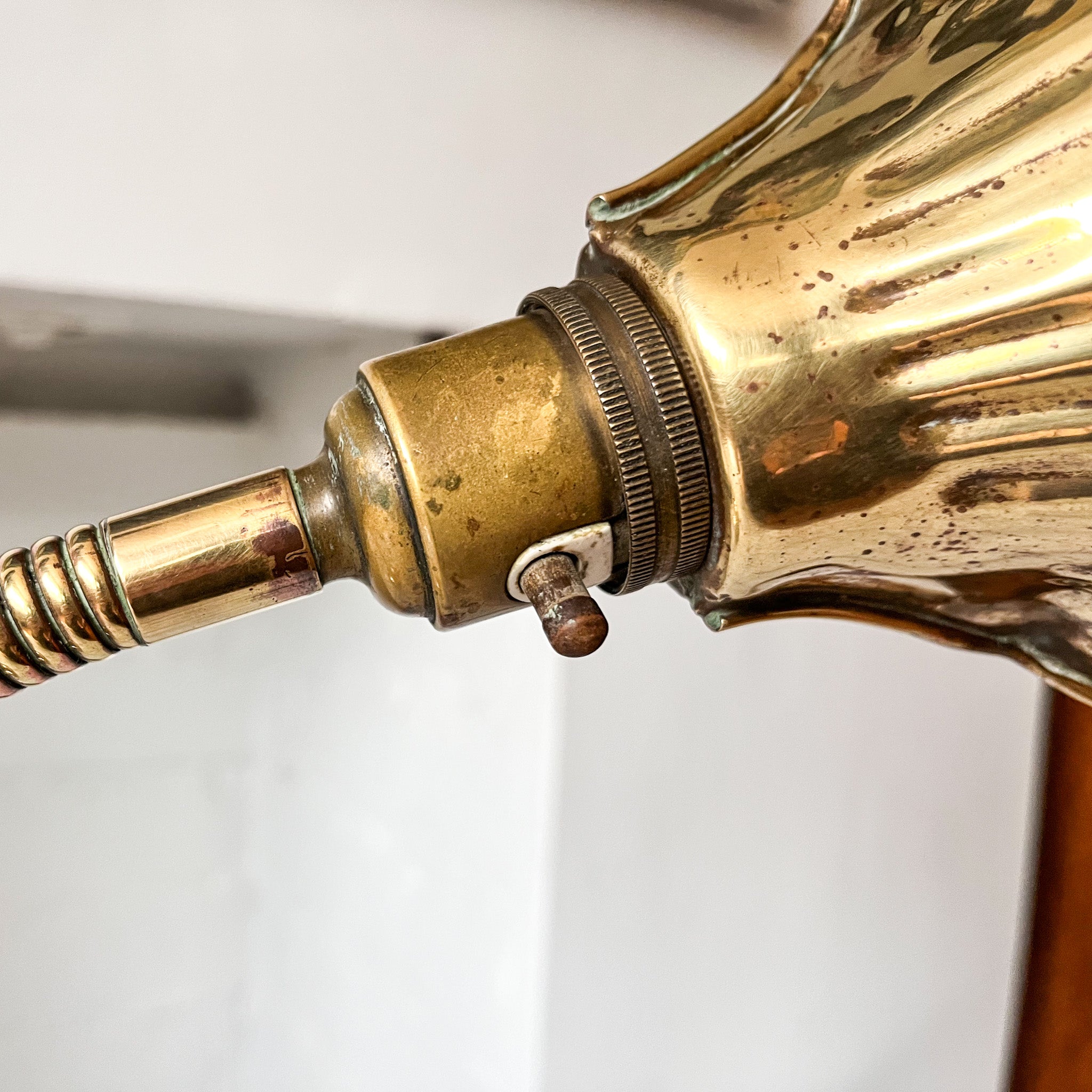 The lamp is re-wired with a twisted brown fabric cord, PAT tested and ready to use.